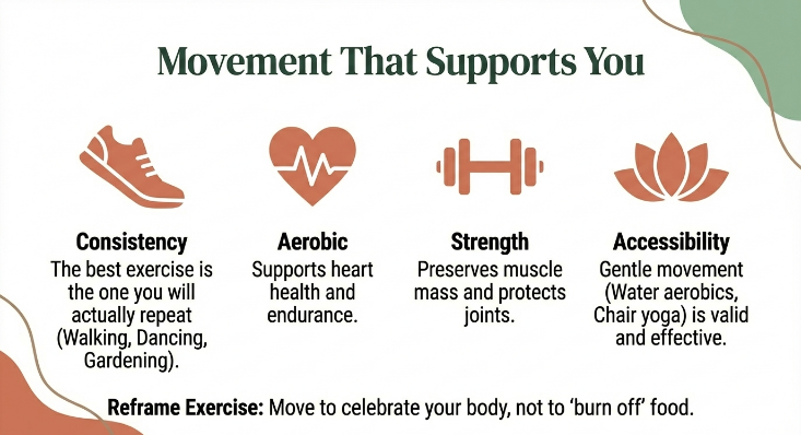 If you live with joint pain or limited mobility, gentle movement can still be beneficial. Water exercise, chair workouts, and physical therapy-guided routines can make movement accessible and safe.